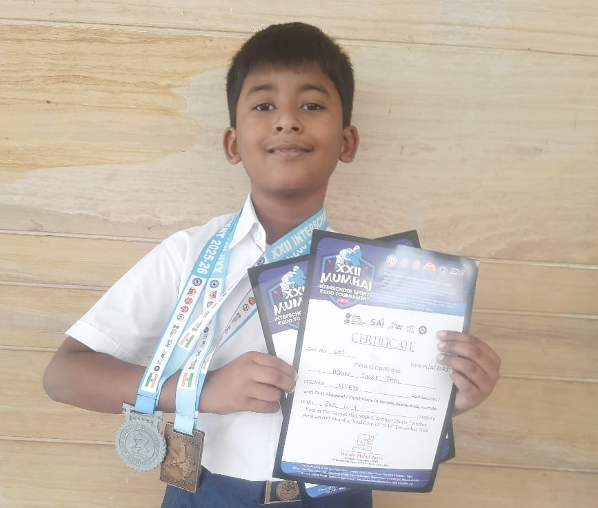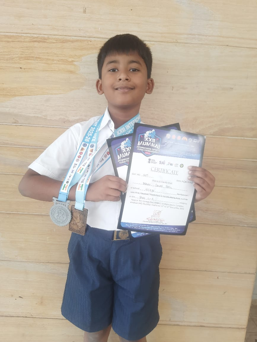 Nalanda Public School enthusiastically participated in the Dhruva Sanskrit Mahotsav held at Vaze Kelkar College, Mulund. Students from Classes 5 to 10 showcased their talents in song, dance, skit, art, digital art, Geeta Antakshari, quiz, and reel-making, all centred around Sanskrit with the Bhagavadgeeta as the theme. The school secured six prizes across different categories, reflecting creativity, teamwork, and dedication. Heartfelt congratulations to all participants for their inspiring performances!